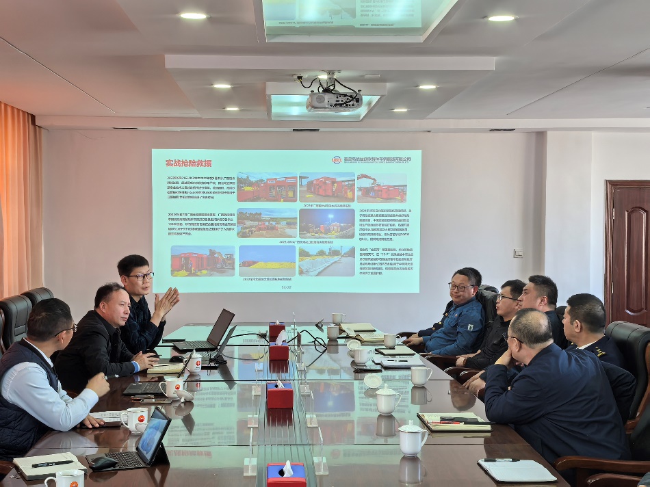 2025 年 3 月 14 日,在中国消防救援学院应急救援系王志明教授、崔堃鹏副教授带领下,公司研发团队一同前往辽河油田消防救援支队与盘锦市消防救援支队,开展防汛抢险沙袋作业成套技术装备应用情况的专题调研。此次调研重点聚焦于公司正在联合研发的防汛抗洪沙袋智能码垛机装备的实际需求。